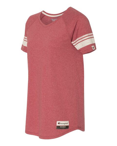 Champion AO350 - Carmine Red Hthr w/ Nat Stripe - Women's Triblend Varsity T-shirt