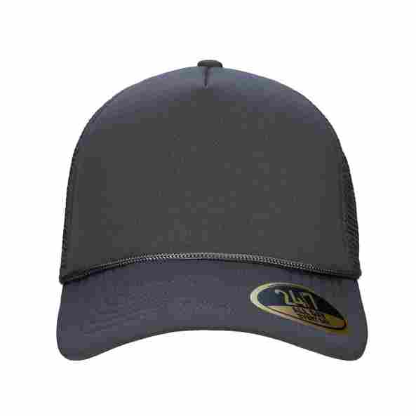 100% polyester foam front and mesh back, 5-panel, adjustable snap back closure, mid-profile, structured, pre-curved visor with 6 rows of topstitching and cord detail, tear-away label. Comes with tear-away embroidery backing for easy decoration.