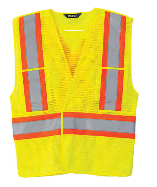 Introducing the Guardian Hi-Vis Safety Vest, a pinnacle of protection designed for high-risk environments. Crafted from a lightweight yet robust 120 gsm (3.6 oz./yd2 – 6 oz./lin. yd) 100% polyester mesh, this vest ensures maximum breathability and comfort during extended wear. Its innovative 5 Point tape fastener tear-away safety design is engineered for quick removal in dangerous situations, enhancing wearer safety. The vest boasts four generously sized front storage pockets, providing ample space for essential tools and personal items. Reinforced with durable binding for increased longevity, this vest also features a convenient Safety D-ring access slot on the back, making it compatible with additional safety equipment. Visibility is paramount in hazardous conditions, which is why the Guardian Hi-Vis Safety Vest includes a 4” high-visibility contrast band coupled with 2” reflective tape on both the front and back body, ensuring the wearer is seen in low light conditions. This vest not only meets but exceeds CSA standards, offering unparalleled safety and visibility for construction workers, traffic controllers, and anyone needing extra visibility on the job. Upgrade your safety gear with the Guardian Hi-Vis Safety Vest and ensure you're seen, safe, and secure, no matter the conditions.