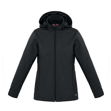 Introducing the 'Hurricane Ladies Insulated Softshell Jacket with Removable Hood' - a pinnacle of outdoor wear designed for the modern woman. Crafted from a robust 300 gsm (8.9 oz./yd2 – 15 oz./lin. yd) 100% polyester mechanical stretch softshell, this jacket is meticulously bonded with a cozy microfleece for unparalleled comfort and warmth. Engineered to withstand the elements, it boasts an impressive 8000 mm waterproof rating and an 800 gsm breathability rating, ensuring you stay dry and comfortable in wet conditions. The wind-resistant and water-repellent finish adds an extra layer of protection against the elements. For enhanced insulation, the jacket features 100 gsm body and 80 gsm sleeves made from 100% recycled polyester, promoting sustainability without compromising on warmth. The YKK reverse contrast color coil front zipper closure adds a touch of style and ensures durability, while the outer pockets with YKK zipper closure keep your essentials secure. The removable hood with an adjustable drawcord offers versatility and protection, and the drop tail hem with adjustable drawcord ensures a perfect fit. Inner fleece sleeve storm cuffs paired with an outer adjustable hook and loop tab closure on cuffs provide extra warmth and comfort. The jacket also includes 2 inner pockets with hook and loop closure for additional storage. Lined with a CX2 tonal printed logo taffeta, this jacket combines functionality with style, making it an essential addition to your outdoor wardrobe.