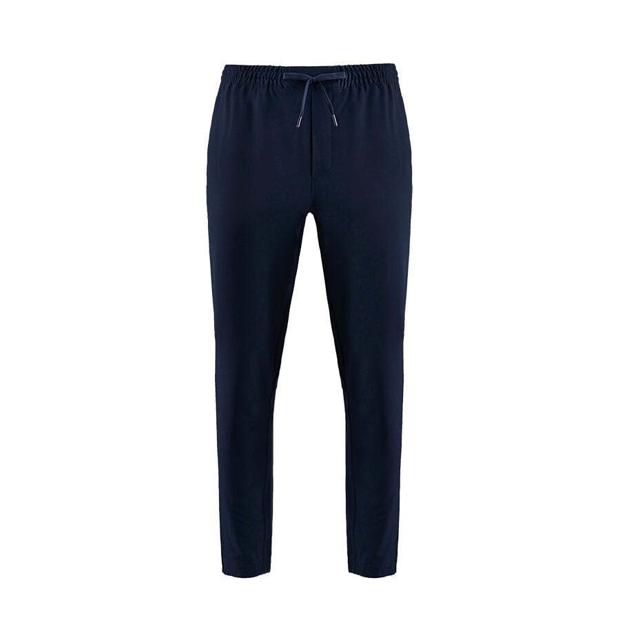 220 gsm – 6.5 oz./yd² – 10.8 oz./lin.yd 91% recycled polyester, 9% elastane 4-way stretch woven fabric with water repellent finish. Woven mesh trim fabric at back yoke and crotch gusset for ventilation. Elasticized waistband with adjustable drawcord (drawcord not available on youth). YKK front and back zippered pockets. Tapered leg with elastic at back of hem for mens and ladies. Zippered vent at side seam. On youth size vent zipper is stepped up from bottom for easier hemming. Unlined.