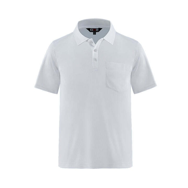170 gsm – 5.0 oz./yd² – 8.5 oz./lin.yd 100% polyester tricot knit with snag resistant, wicking and anti-bacterial finishes. Flat knit collar. Button placket with CX2 logo buttons. Left chest pocket. Side slits at body hem.