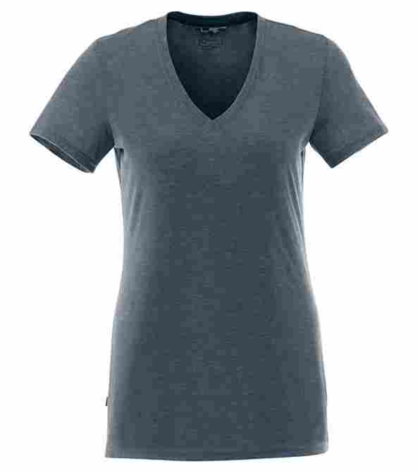 The Sarek V-Neck Short Sleeve Tee is a new twist on a Trimark best-seller. Available in nine vibrant colours, the Sarek V-Neck will represent your brand in style. It features a V-neck, self-fabric collar and chainstitch detail. Available in women's only, this style has shaped seams and a tapered waist for a flattering fit.