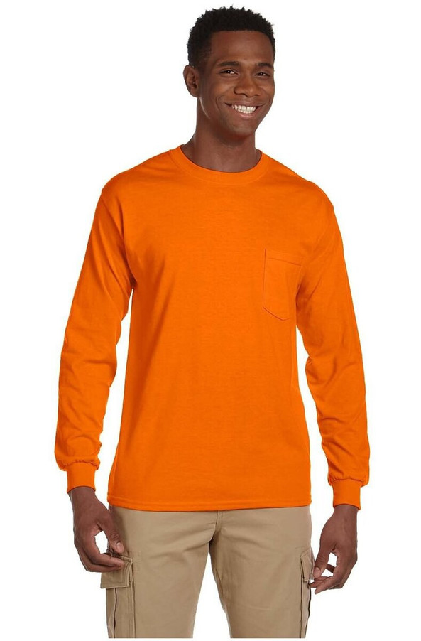 100% Cotton preshrunk jersey knit 10.1 oz. Double-needle 7/8” collar. Taped neck and shoulders. Double needle, left chest 5-point pocket. Rib cuffs. Double needle bottom hem. Quarter-turned to eliminate center crease. (sport grey 10% polyester, safety orange/safety green 50% polyester)