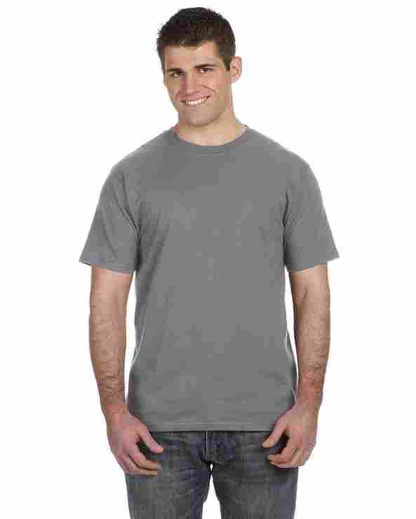 4.5 oz., preshrunk 100% combed ringspun cotton; 30 singles; Heather Grey: 90% cotton, 10% polyester; Heather colors and Neon colors: 65% polyester, 35% cotton; Graphite Heather: 50% cotton, 50% polyester; Seamed collar; Shoulder-to shoulder tape; Tubular construction; semi-fitted, side-seamed; Double-needle sleeve and bottom hem; Oeko-Tex® Standard 100 Certified; Tear away label; Anvil Black label tranistioning to Gildan Black label in 2022; Inventory may be mixed; Gildan's manufacturing process utilizes 45% renewable energy; Gildans Community Investment Program supports education, the environment, humanitarian aid and active living in the communities we do business in