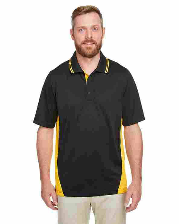 6.5 oz./yd2 / 225 gsm; 100% polyester Snag Protection Plus jersey; Moisture-wicking and anti-microbial; UV 15-39 protection; Matching knit collar with double tipping; Three-button placket with contrast inner detail; Contrast pearl buttons; Side vents; Industrial Laundry Tested to 75 washes