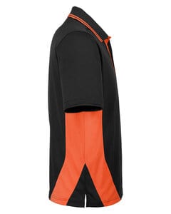 6.5 oz./yd2 / 225 gsm; 100% polyester Snag Protection Plus jersey; Moisture-wicking and anti-microbial; UV 15-39 protection; Matching knit collar with double tipping; Three-button placket with contrast inner detail; Contrast pearl buttons; Side vents; Industrial Laundry Tested to 75 washes
