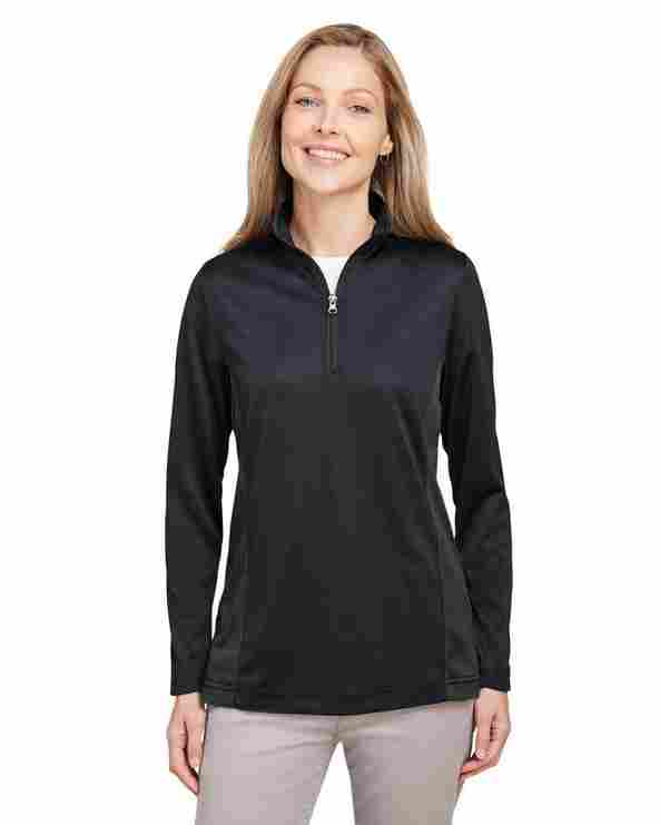 6.5 oz./yd2 / 225 gsm, 100% polyester snag protection plus jersey; Moisture-wicking, antimicrobial; UV 15-39 protection; Center front coil zipper; Side vents; Carbon neutral style in partnership with Green Story third party verified carbon offset program