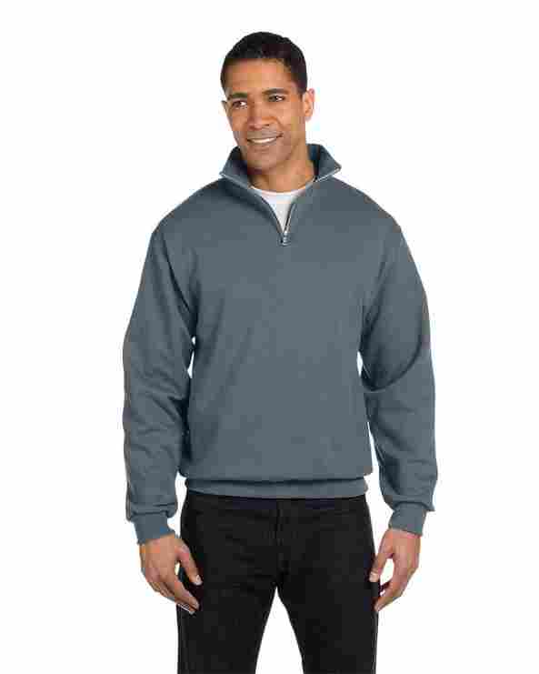 The JERZEES 995MR is a Quarter-Zip Cadet Collar Sweatshirtade made with a 50/50 blend of cotton & polyester, it also features double-needle coverstitching on armholes and waistband. It has a concealed 7" aluminum zipper and concealed seams on cuffs. This sweatshirt has a seamless body with set-in sleeves and 1x1 rib cuffs and waistband.