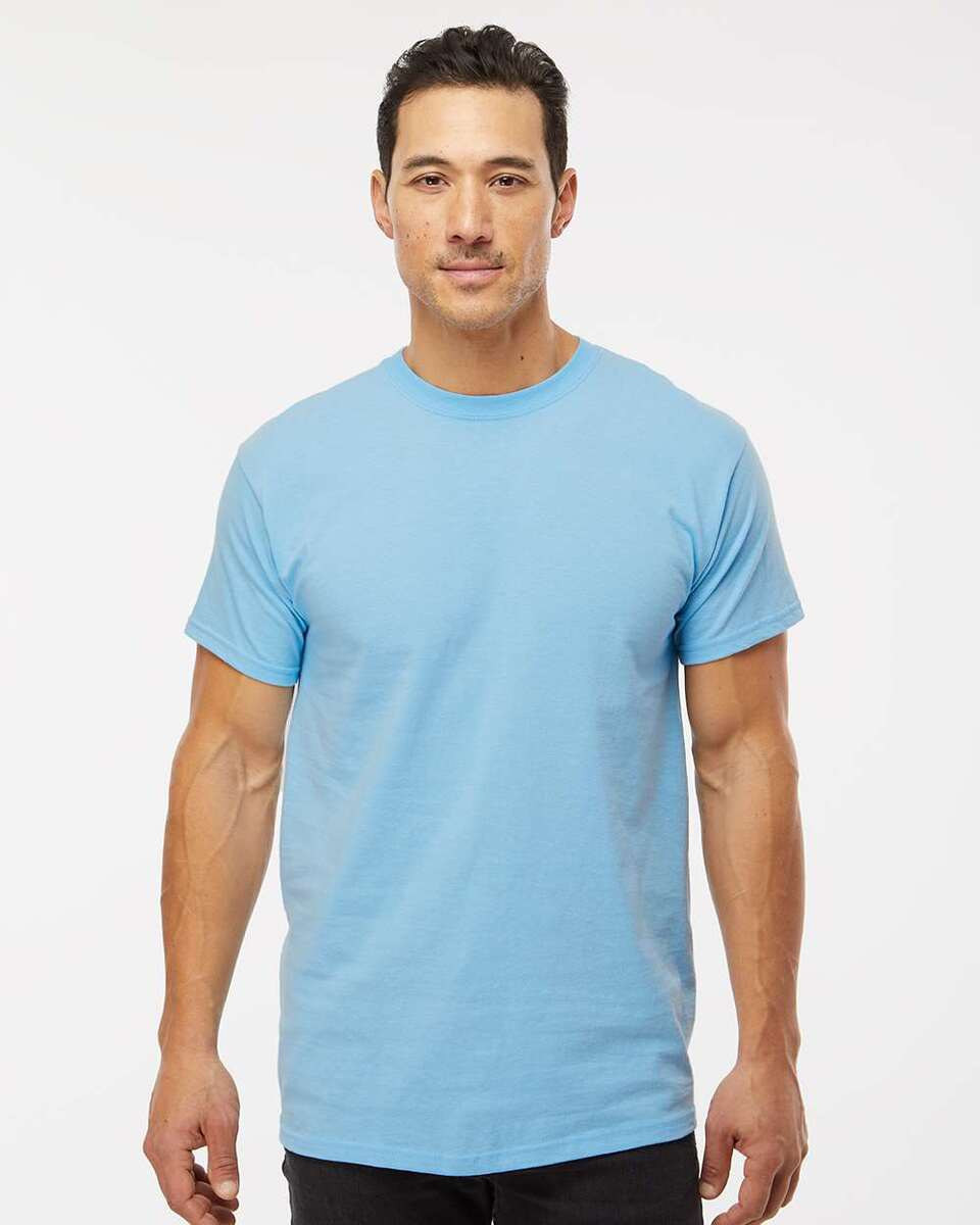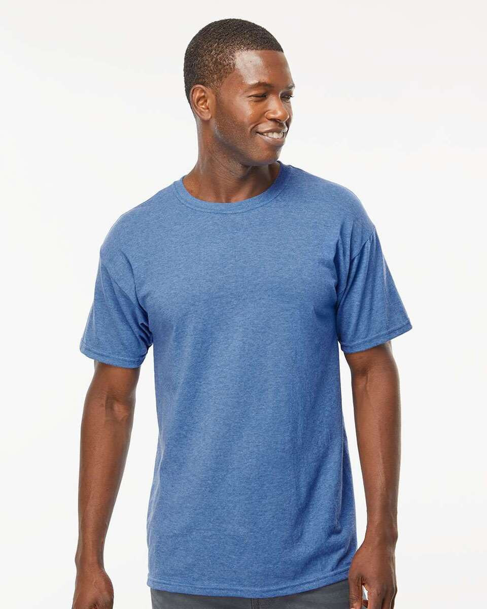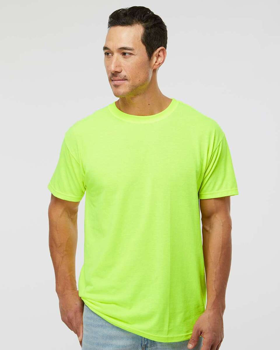 100% Cotton preshrunk jersey 8.5 oz. Taped neck and shoulders. Double needle sleeve and bottom hem. Double needle coverseamed neck. Tubular / quarter turned body.(sport grey 10% polyester, dark heather/safety green/safety orange 50% polyester)