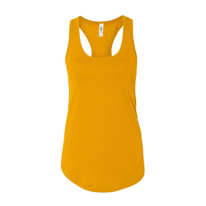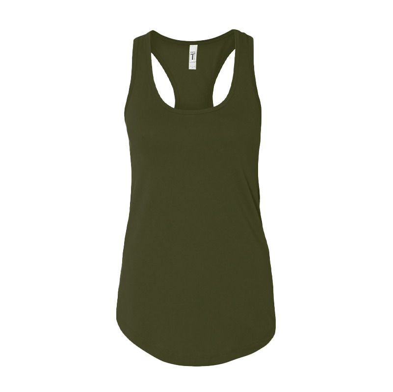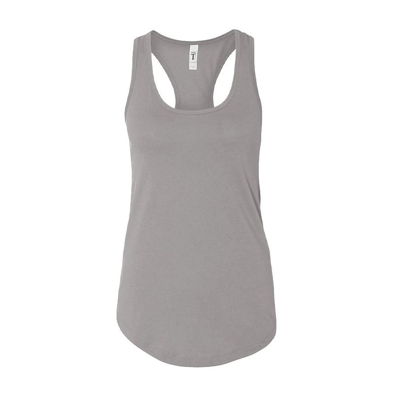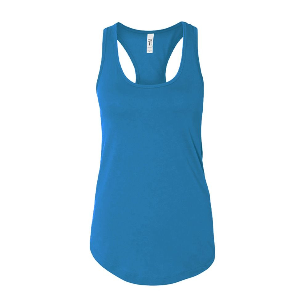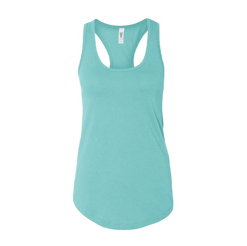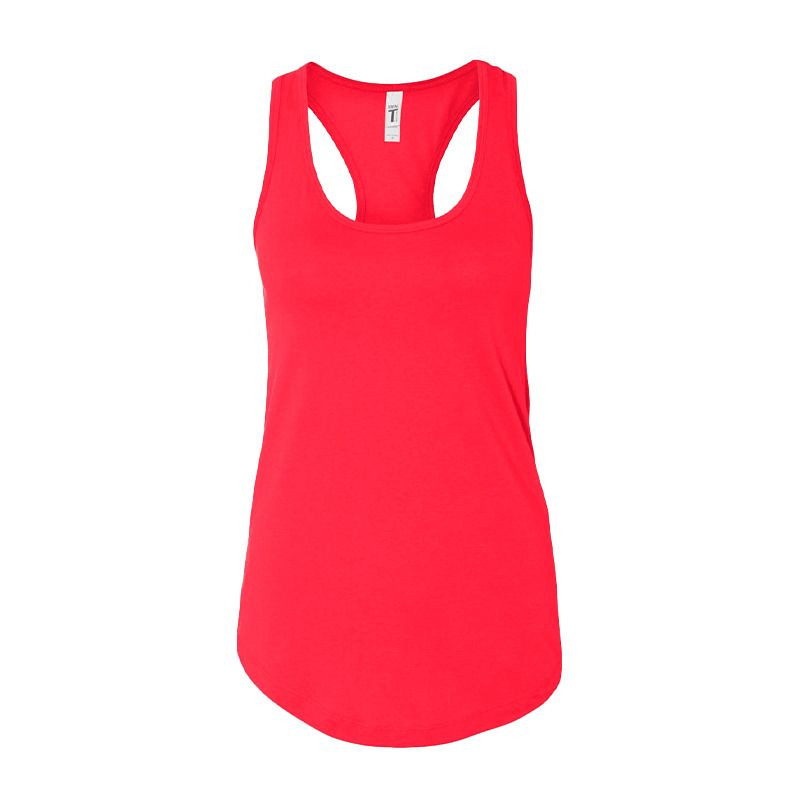 The Next Level 1533 is a Women's Ideal Racerback tank top made of a 60/40 blend of combed ring spun cotton and polyester. It has a tear away label and is fabric laundered.