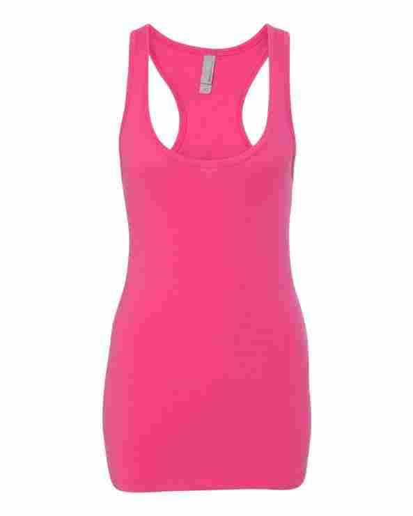 The Next Level 6633 is a Women's Jersey Racerback Tank top made of a blend of 57/38/5 combed ringspun cotton/polyester/spandex, 40 singles. It is fabric laundered with a tear away label.