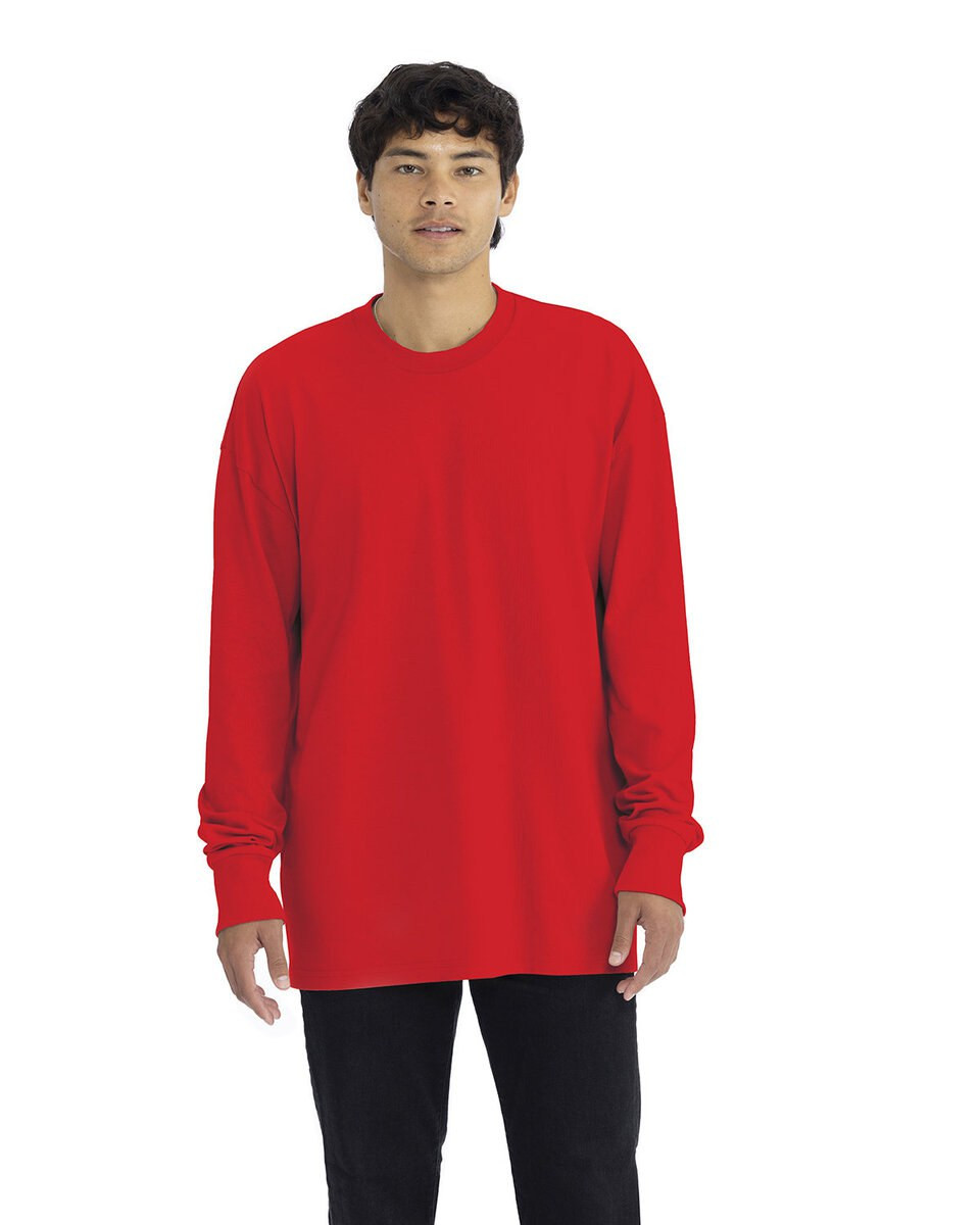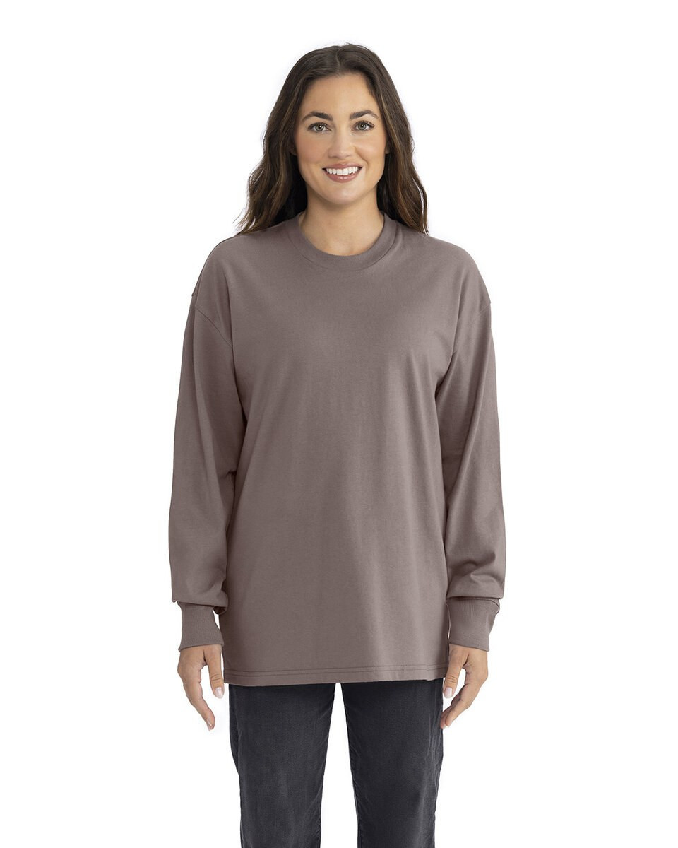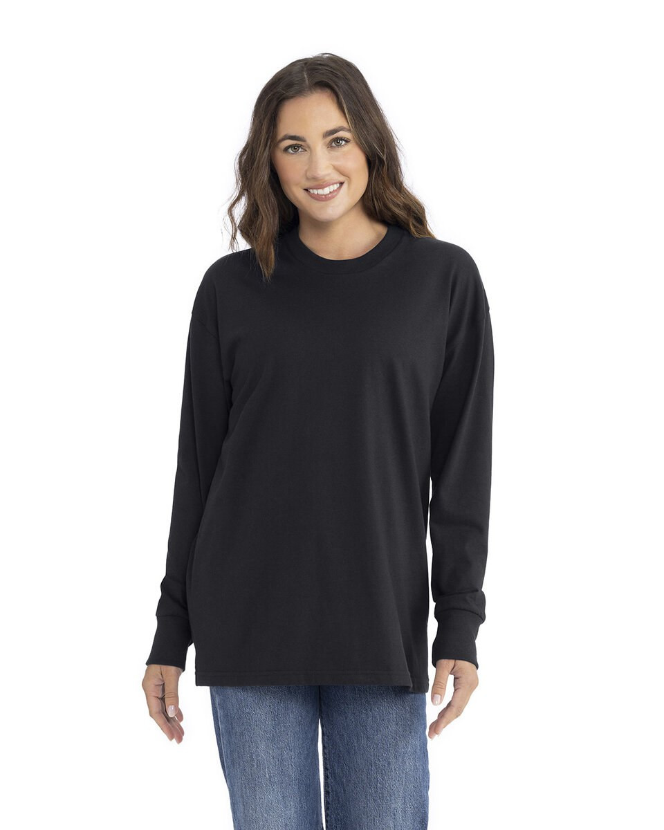 6.8 oz., 100% US combed ring-spun cotton, 16 singles; 1 neckband; Side seamed; Shoulder-to-shoulder binding; Dropped shoulder; Oversized fit; Set-in long sleeve with 3" rib cuff; Finished straight bottom hemline; Tear-away label; NLA has a recycling program for all fabric waste collected from the cutting process. All fabric scraps are sent to a recycling company that cleans and processes them to be used for cushion filling, rugs, etc. to date, 24.3m pounds of fabric have been recycled