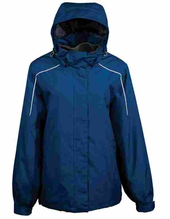 This jacket with removable fleece liner and detachable hood features a center front stormflap with velcro closures and lower zippered pockets with easy-grip pulls. Smartly detailed with reflective diminish piping and non-chaffing heat-transfer interior neck label. Handy interior patch pocket. Half elastic cuffs with adjustable cuff tabs. Adjustable drawcord & toggle at hem. Women's version features shaped seams for a more flattering fit. Removable liner has lower reverse coil zippered pockets with easy-grip pulls and adjustable drawcord & toggle at hem. Women's version features shaped seams for a more flattering fit. FABRIC: Shell: 100% Polyester oxford with water resistant (1000mm) coating & water-repellent finish on the surface. Lining: 100% Polyester mesh on upper body. 100% Polyester taffeta on lower body, sleeves, hood & pocket bags. Component Jacket Shell: 100% Polyester fleece two sides brushed with anti-pill finish. 220 g/m2,(10.8 oz/linear yd) Component Jacket Lining: 100% Polyester taffeta