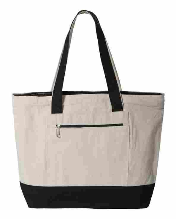12 Oz. Cotton Canvas zippered shopping tote w/22" handle and inside pocket. Gusset.