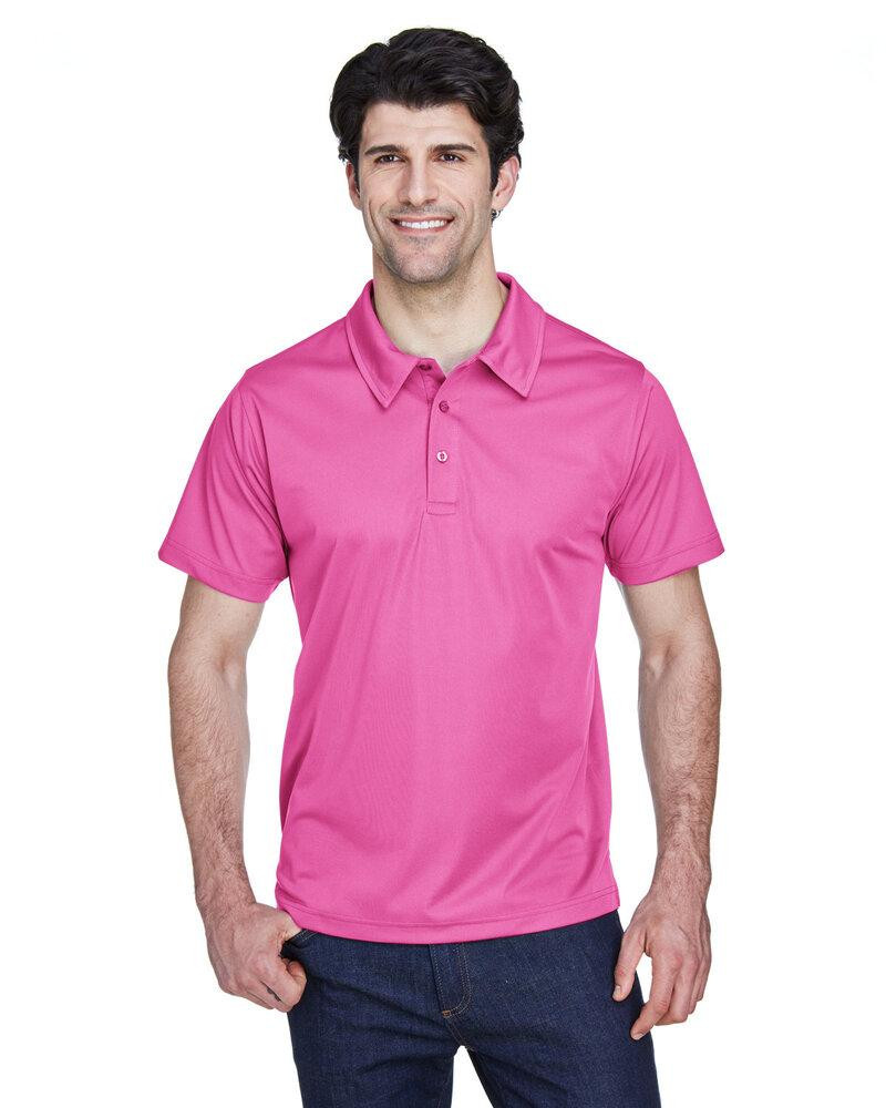 4.42 oz./yd2 / 150 gsm, 100% polyester snag-protection piqué with moisture-wicking, anti-microbial, UV protection performance; integrated collar stays; side slits; cationic dyes for superior brightness and excellent color-fastness; three-button placket with dyed-to-match buttons;