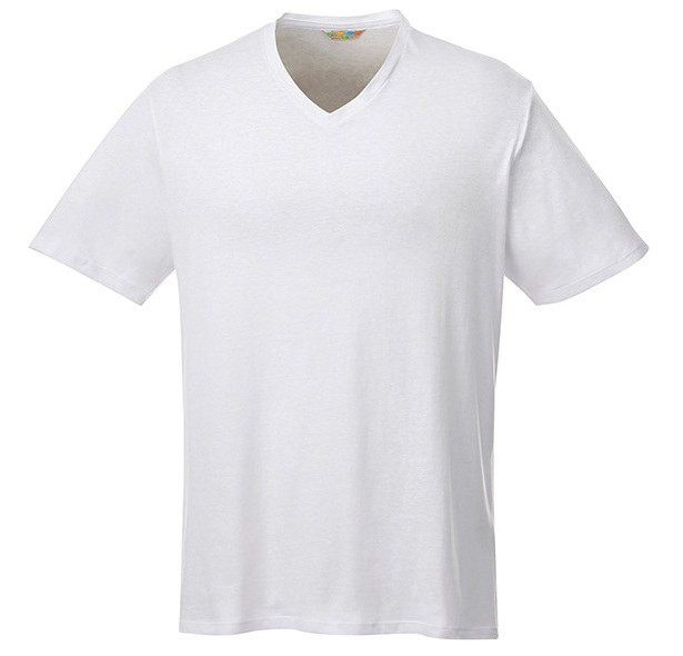 The Men's Canyon Short Sleeve Tee is a V-neck style tee featuring a cozy, tri-blend fabric. This lightweight style also provides UV protection (UPF 40+).