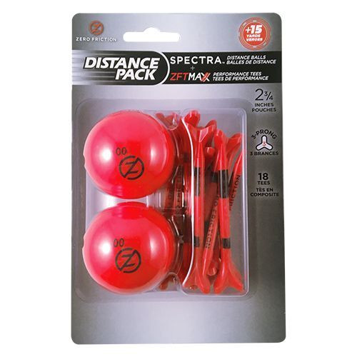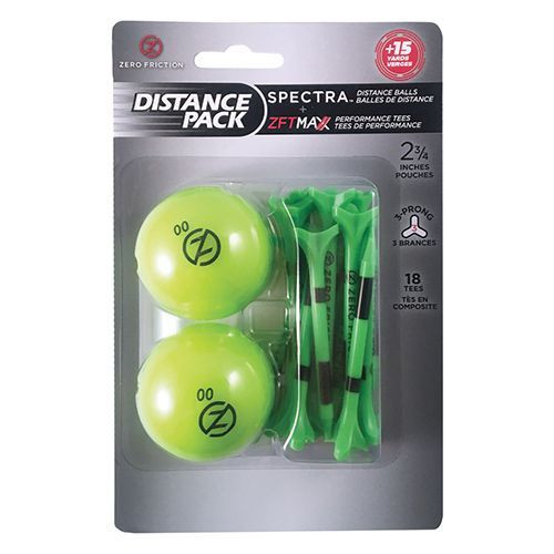 Two Spectra matte finish golf balls with matching neon coloured ZFT Maxx tees in a convenient blister pack.